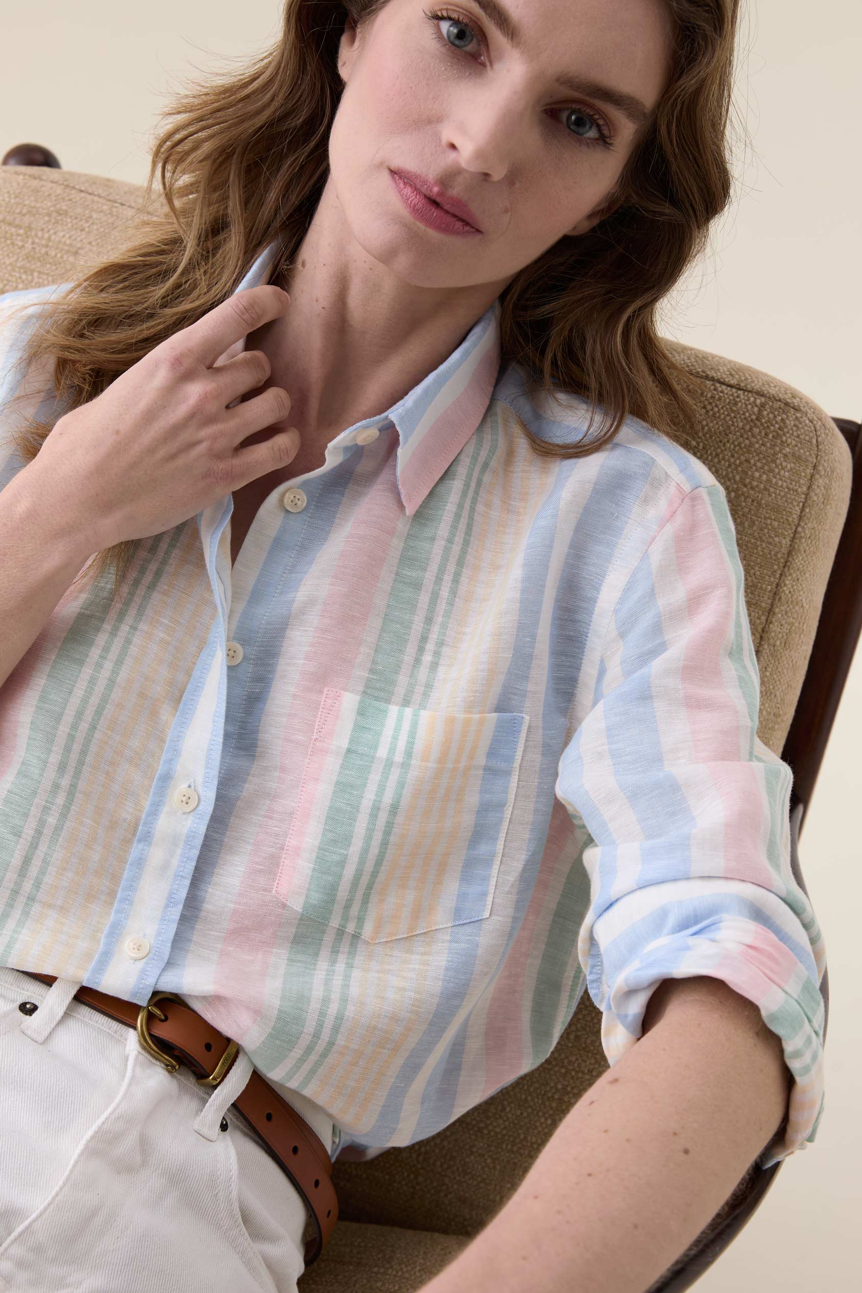 Cambray Multi Stripe Linen Blend Shirt—