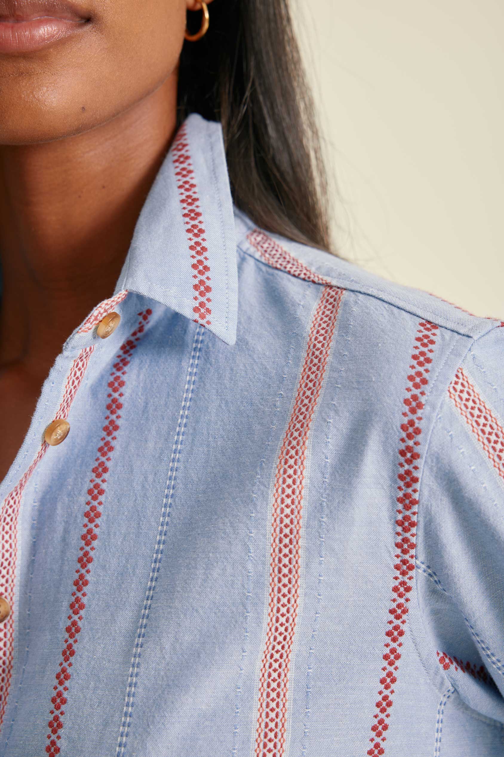 - Lightweight cotton shirt with interest woven stripe pattern