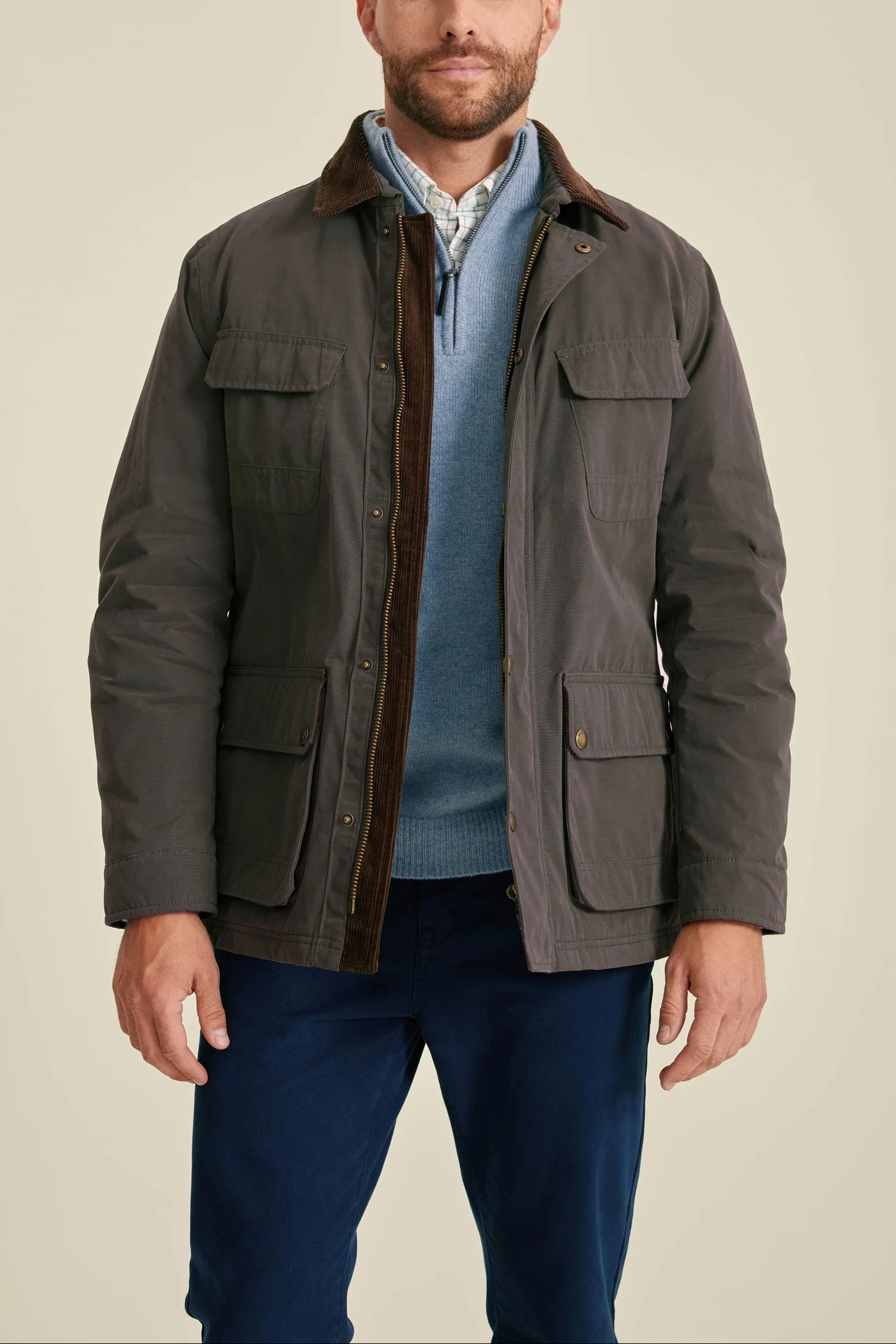 - Functional dry wax utility jacket with cord collar and 4 pocket design