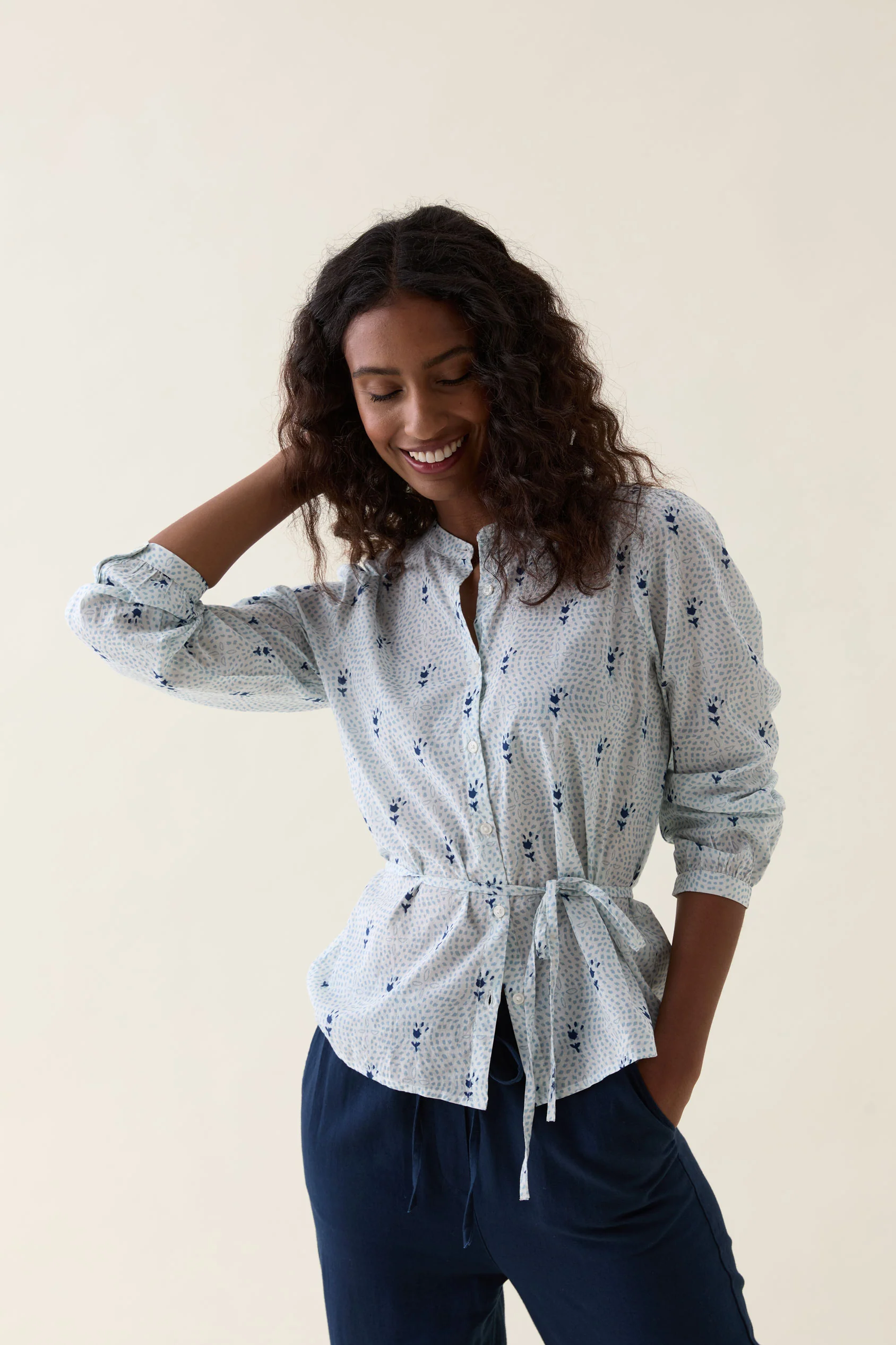 Witley Blues Printed Tie Waist Blouse