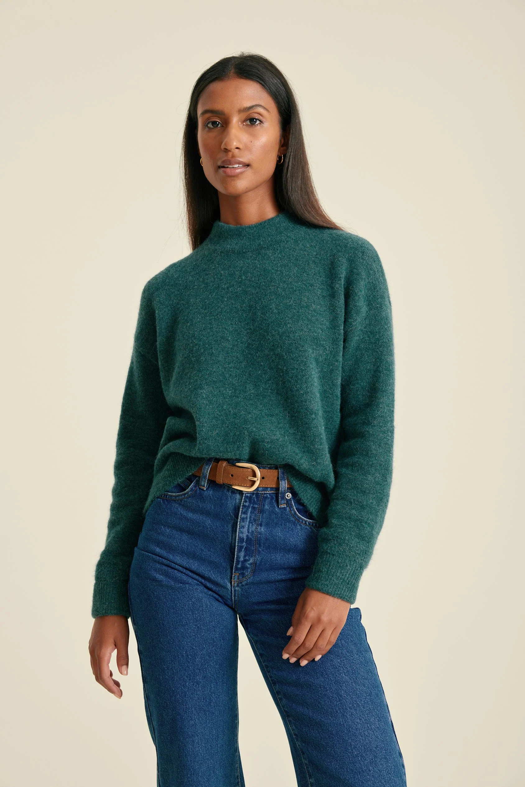 - Mock neck jumper with rib detail in supersoft alpaca-blend yarn